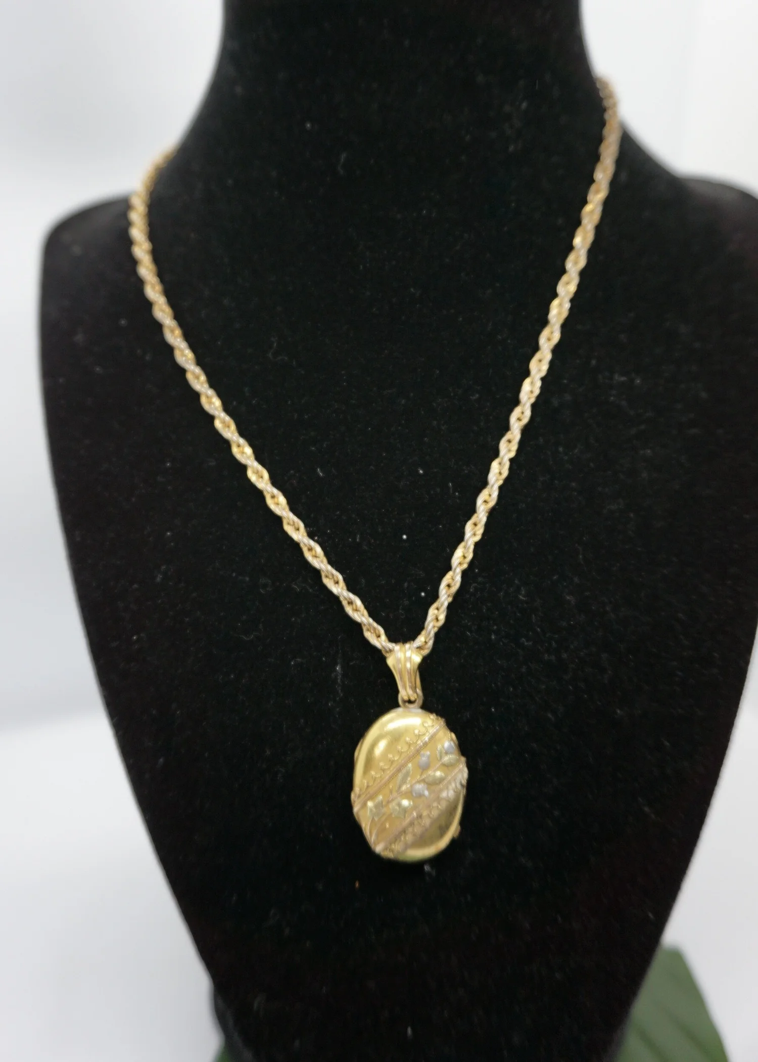 NECKLACES › Floral Oval Locket 1 / 3 Image 1 of 3 Image 2 of 3 Image 3 of 3 Floral Oval Locket $135.00 Gold-filledCirca 190018 inches in length and 1.25 inch length pendant Purchase Added! Gold-filledCirca 190018 inches in length and 1.25 inch length pendant