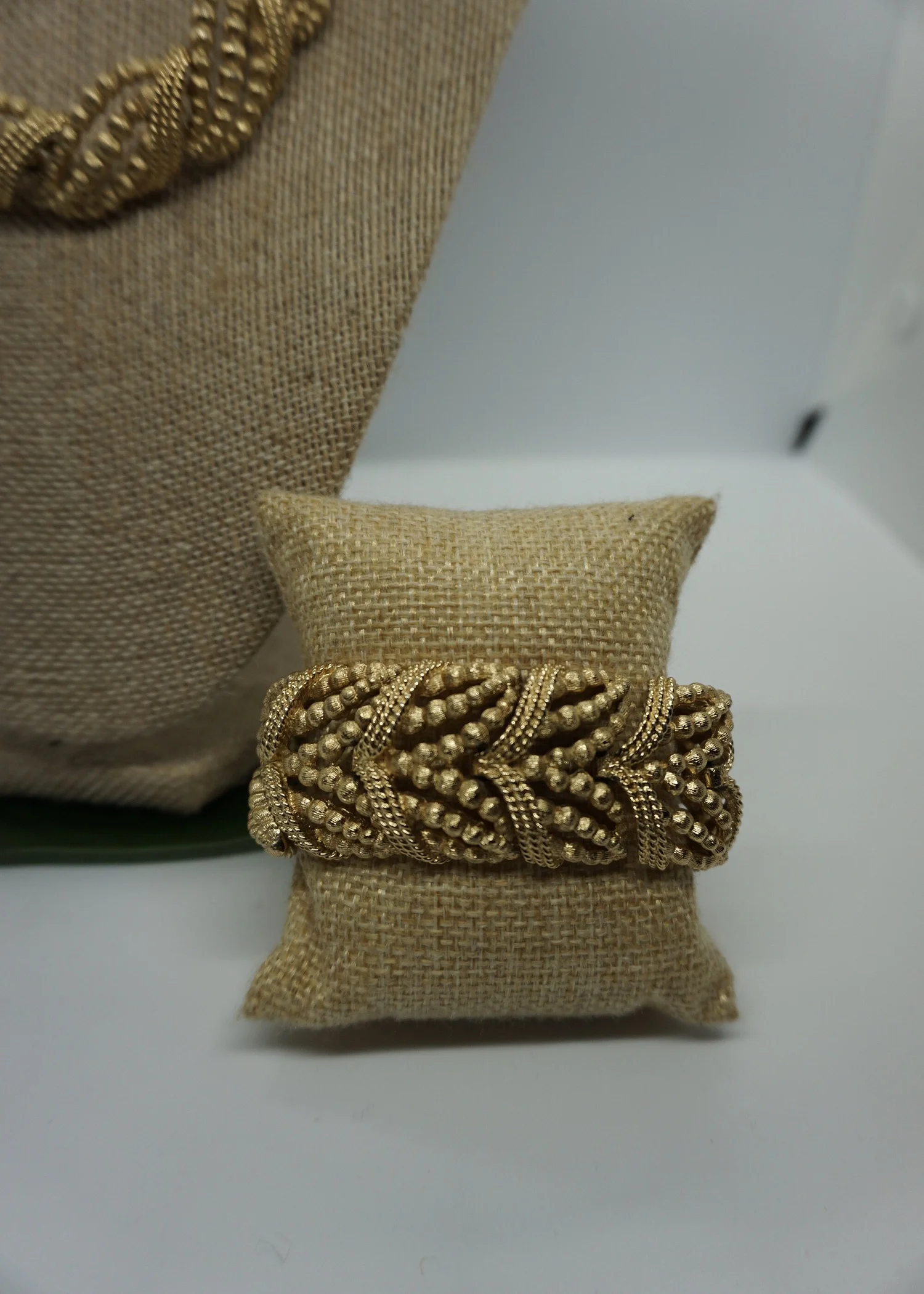 NECKLACES › Russian Gold Set 1 / 3 Image 1 of 3 Image 2 of 3 Image 3 of 3 Russian Gold Set $79.00 Gold-filledCirca 1950Necklace is 15 inches in lengthBracelet 7 inches (Medium) Purchase Added! Gold-filledCirca 1950Necklace is 15 inches in lengthBracelet 7 inches (Medium)